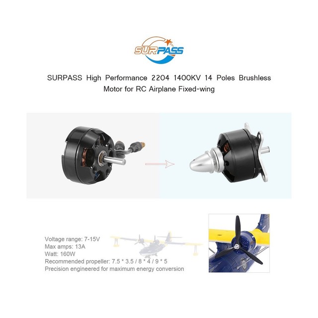 Hij is verkrijgbaar in vijf verschillende KV-waarden (930KV, 1000KV, 1400KV, 2200KV, 2450KV), zodat je de motor kunt kiezen die het beste past bij je model.
