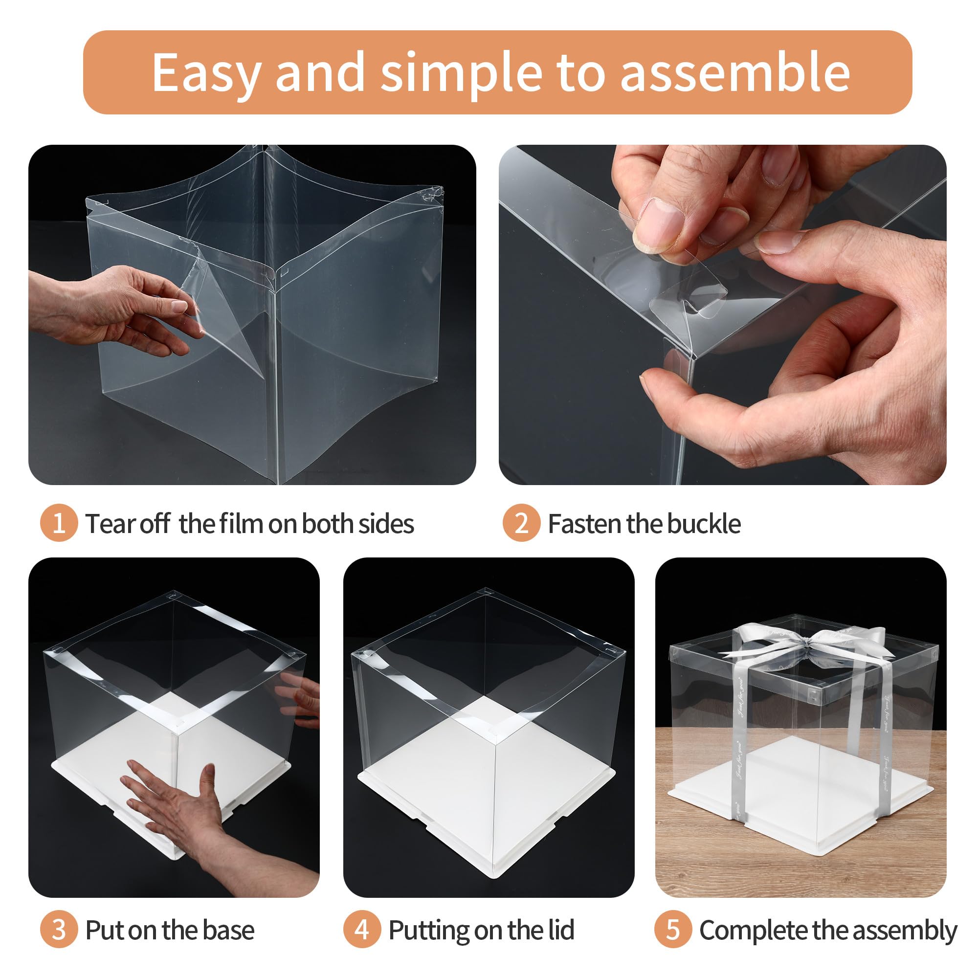 Gcardist Zwarte Taartdozen Met Venster 25,4x25,4x6,3 Cm - 12 Stuks Pop-up Bakkerij Dozen Voor Gebak